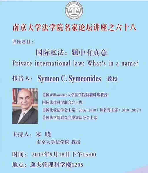 2017年9月,受成人网 邀请,美国Willamette大学法学院特聘教授西蒙尼德斯教授莅临成人网 讲学。西蒙尼德斯教授是美国国际私法学界泰斗,并担任任国际法律科学联合会主席、美国比较法学会主席(2006——2010)和名...
