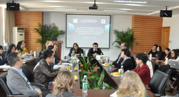 2017-11-2611月23日下午14时,德国驻上海总领事Christine D. Althauser女士一行三人来到法学院1205会议室,与中德法学研究所的师生们进行座谈交流。中德法学研究所所长方小敏教授对Althauser女士的到来表示热烈欢迎,回顾研究所...