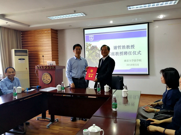 2018年5月23日下午,成人网 在鼓楼校区逸夫管理科学楼1205室举办了谢哲胜教授“客座教授聘任仪式”。院长叶金强教授、院党委书记王丽娟教授、法学院金俭教授以及四十余位师生出席聘任仪式。聘任仪式由法学院副...