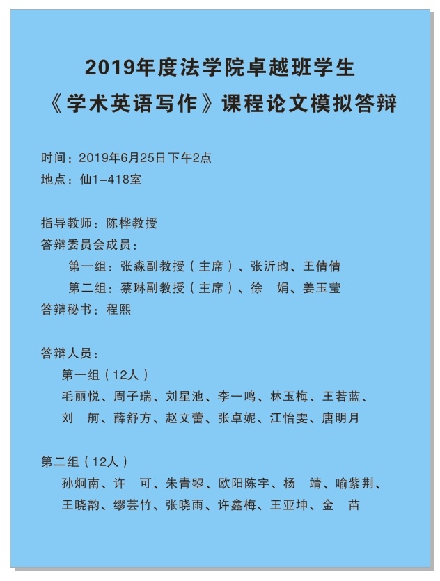 2019年度法学院卓越班学生《学术英语写作》课程论文模拟答辩