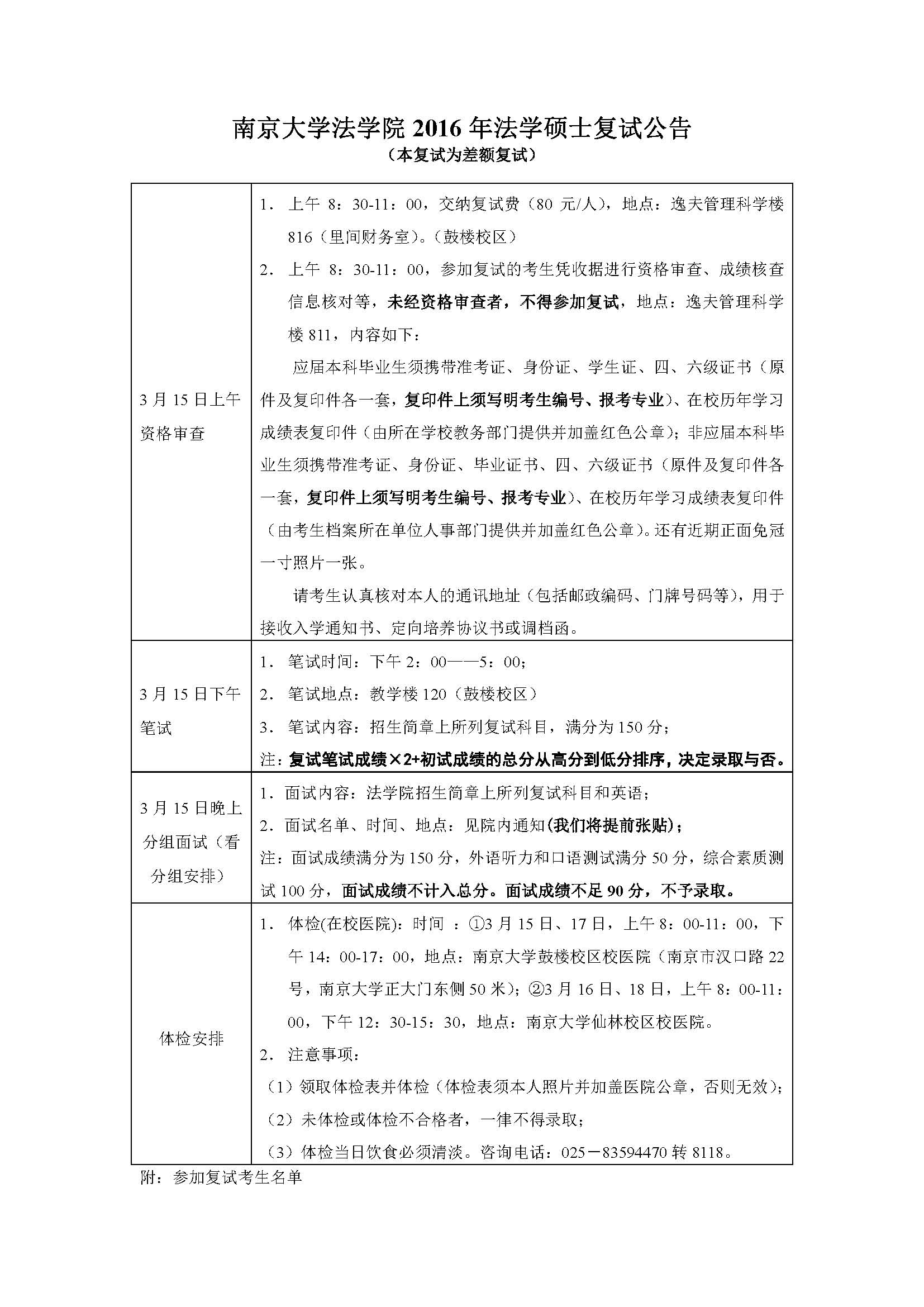 成人网 2016年法学硕士复试公告及参加复试考生名单