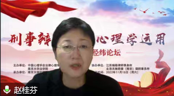 本单元由中国人民公安大学教授、中国心理学会法律心理学专业委员会理事赵桂芬博士主持。北京天驰君泰(上海)律师事务所合伙人王盈律师,江苏瑞格律师事务所合伙人蒋珩律师进行发言报告。江苏大学法学院讲师吴进娥博士,北京市尚公(南京)律师事务所权益合伙人、监事会主席蔡栋律师围绕报告内容与谈交流。