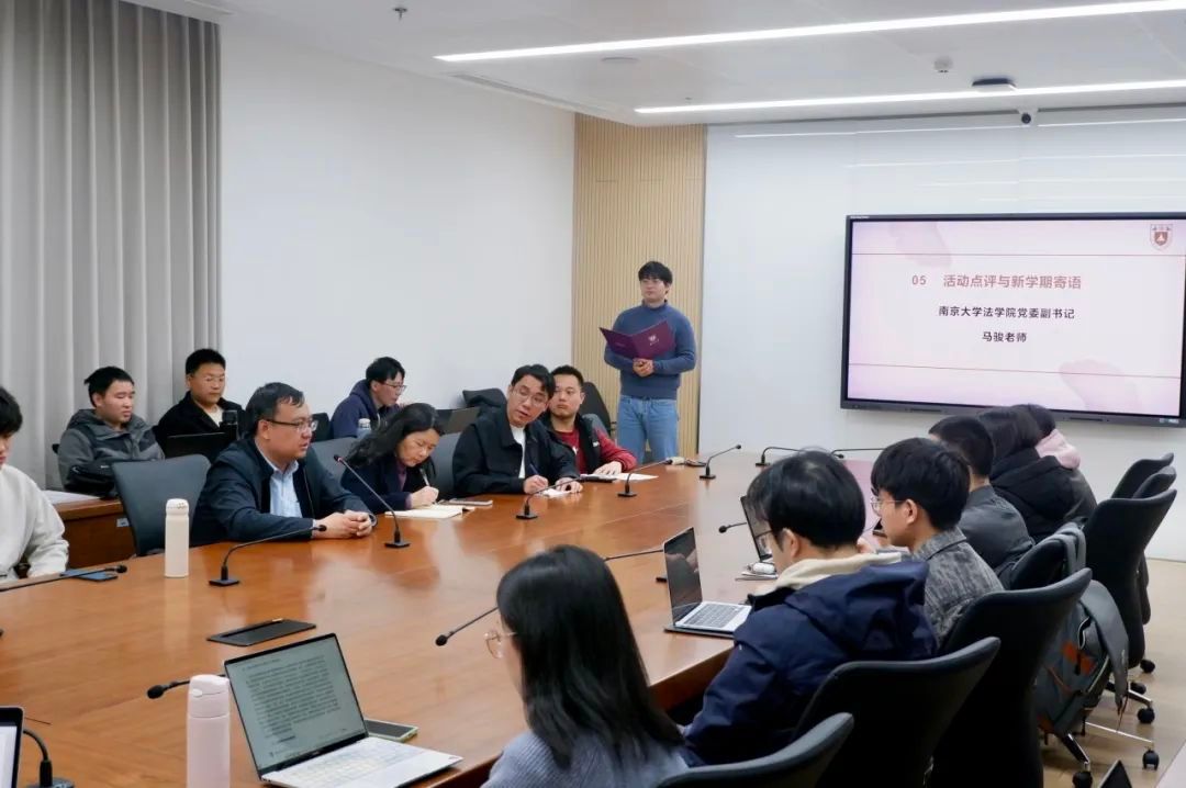 活动最后,法学院党委副书记马骏老师进行了点评,并为同学们送来新学期寄语。他强调,要深刻理解和把握两会精神中蕴含的时代要求,要提高政治站位,从法治视角落实两会报告精神。