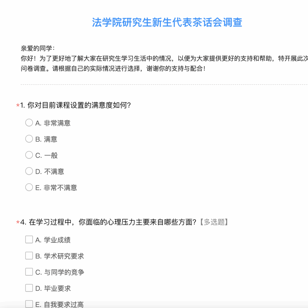 会前,法学院研究生会通过问卷调查的形式广泛征集2024级研究生的意见建议,各与会学生代表同样在班级内收集新生意见,并汇总形成了详实的调查结果。其中,大部分同学的关注点聚焦于学习环境与生活感受、职业规划与未来发展方面。
