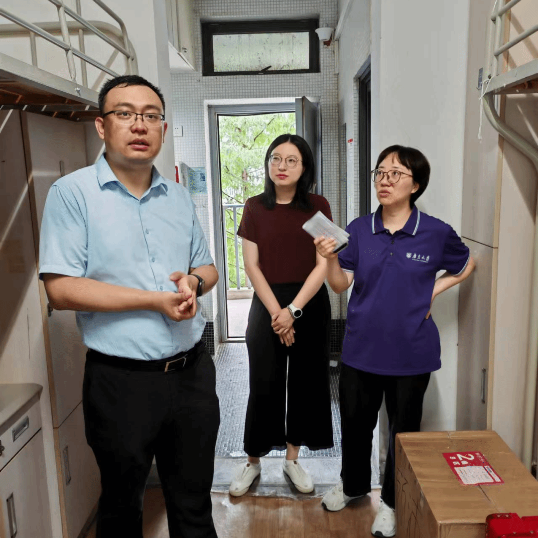 为保障搬迁工作顺利进行、加强师生间沟通交流,搬迁期间,法学院党委副书记马骏老师、法学院财务处兼职辅导员宋洁老师来到仙林校区搬迁现场指导搬迁方案的整体运作。老师们现场询问同学们的搬迁情况,参观检查学生宿舍,耐心倾听同学们对住宿状况的想法意见,商讨提出对搬迁后宿舍的针对性建议,确保同学们住宿安心、生活便利。
