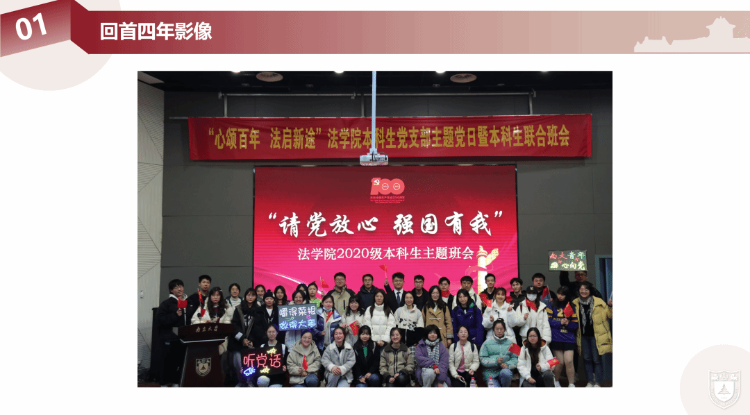2024年5月31日,本科四年级团总支于鼓楼校区举办了“青春奋进,不负韶华”主题团日暨毕业班会活动。法学院党委副书记马骏老师、辅导员路敏玥老师出席本次活动。本次活动由2020级本科生熊昕旖主持。活动带领大家重温在南大的四年美好时光,同时展望未来,为同学们的本科生活划上圆满句号。