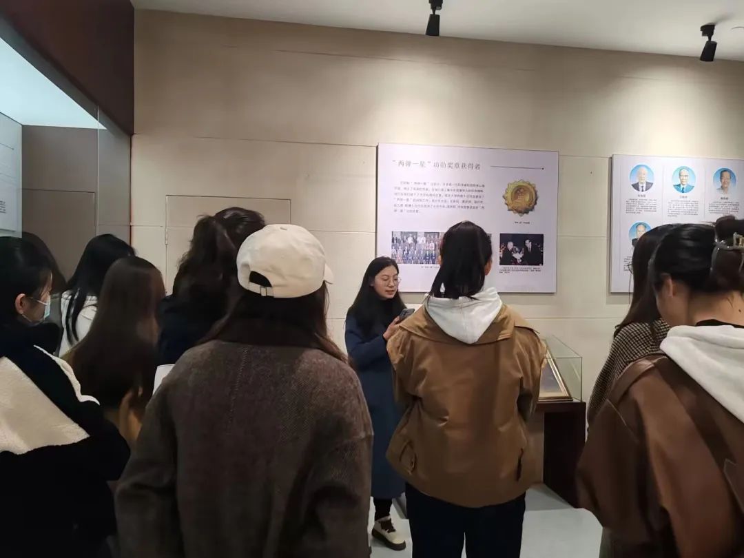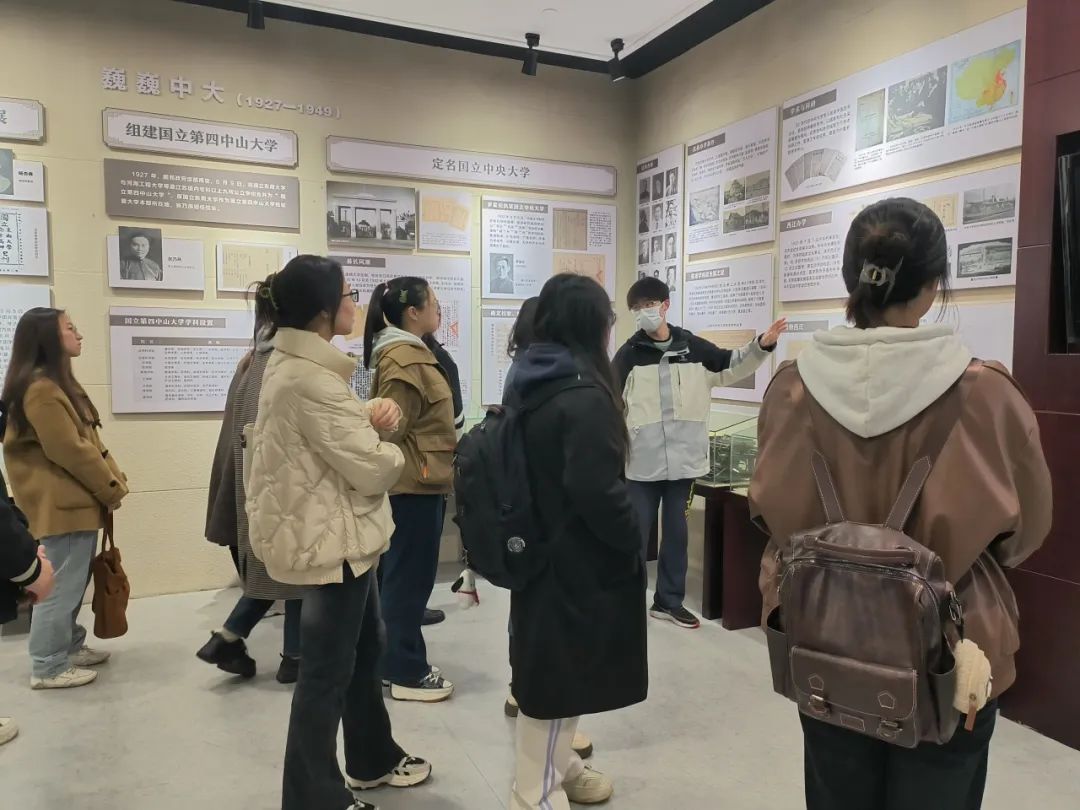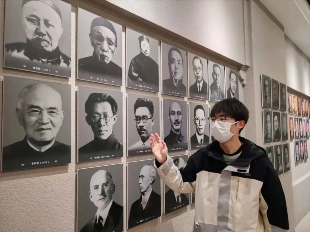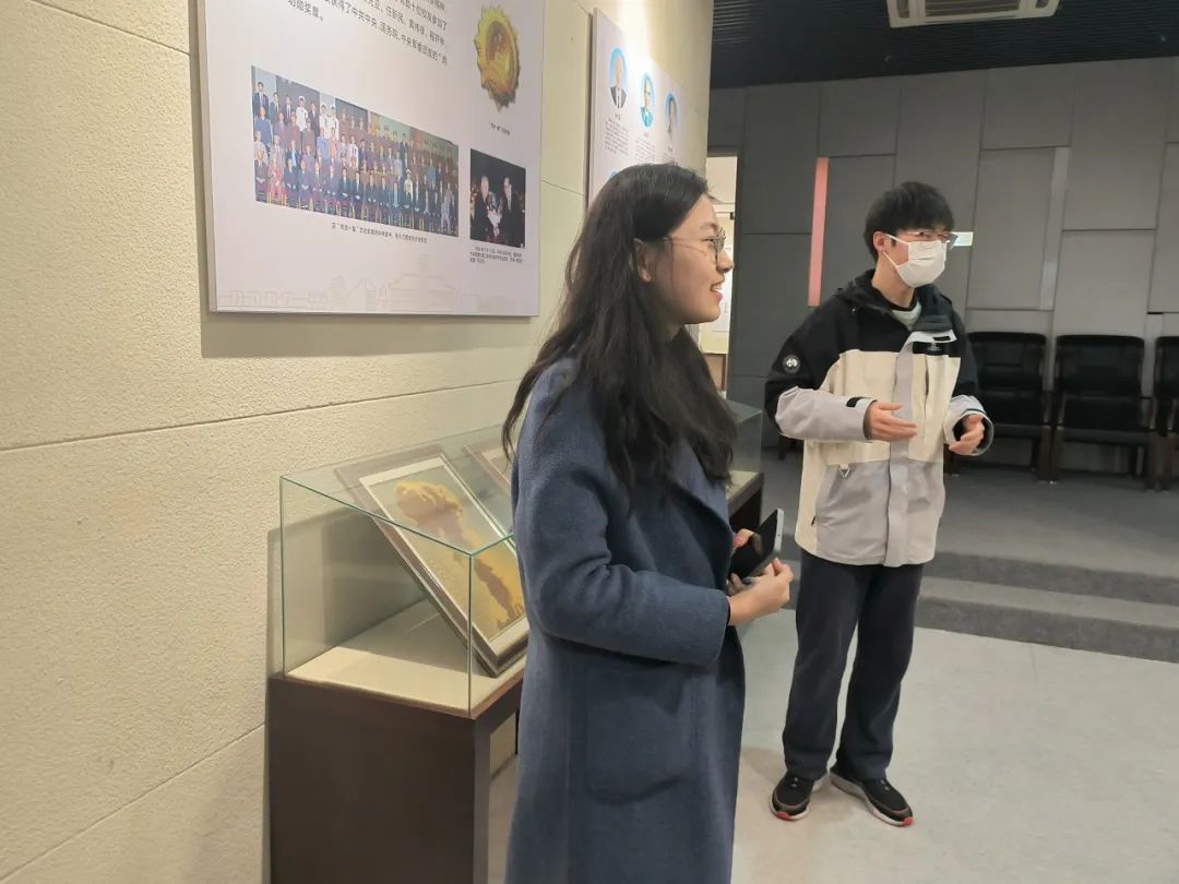 第一部分,团支部书记唐知圣同学带领支部成员们参观校史馆一楼展区。
