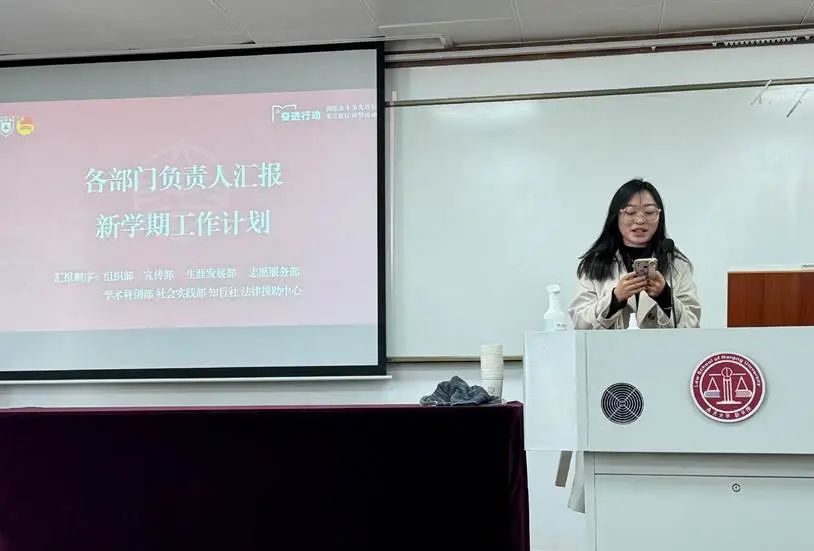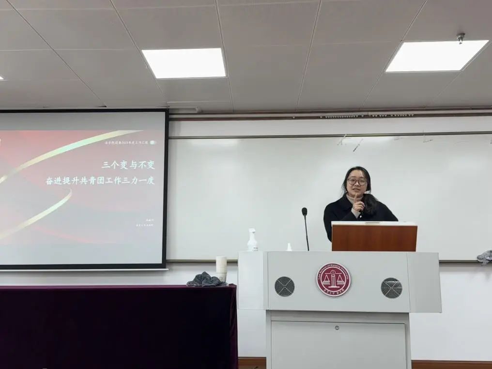 会议的第二项议程,由学生团委副书记章岳珲向现场同学们传达了校团委新学期工作布置会议的主要内容。法学院团委在新的学期,将紧跟校团委步伐,在准备“挑战杯”、团代会,谋划“五四”相关活动以及第二课堂培养等方面将拿出新的举措,争取在新的学期创造出更加优异的成绩。