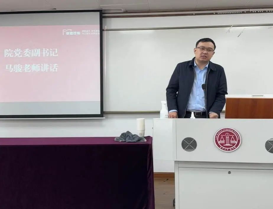 会议开始,马骏老师首先对新学期团委工作提出了要求,他强调,新的学期法学院团委要牢记高校立德树人的根本任务,以学习宣传习近平法治思想为工作主线,牢牢把握政治性、先进性、群众性的工作要求,提升法学院团委在校内团学工作的贡献度。考虑各校区、各阶段同学们的真切需求,关注第二课堂提升、就业指导等重点问题,服务师生,举办同学满意的各项活动。