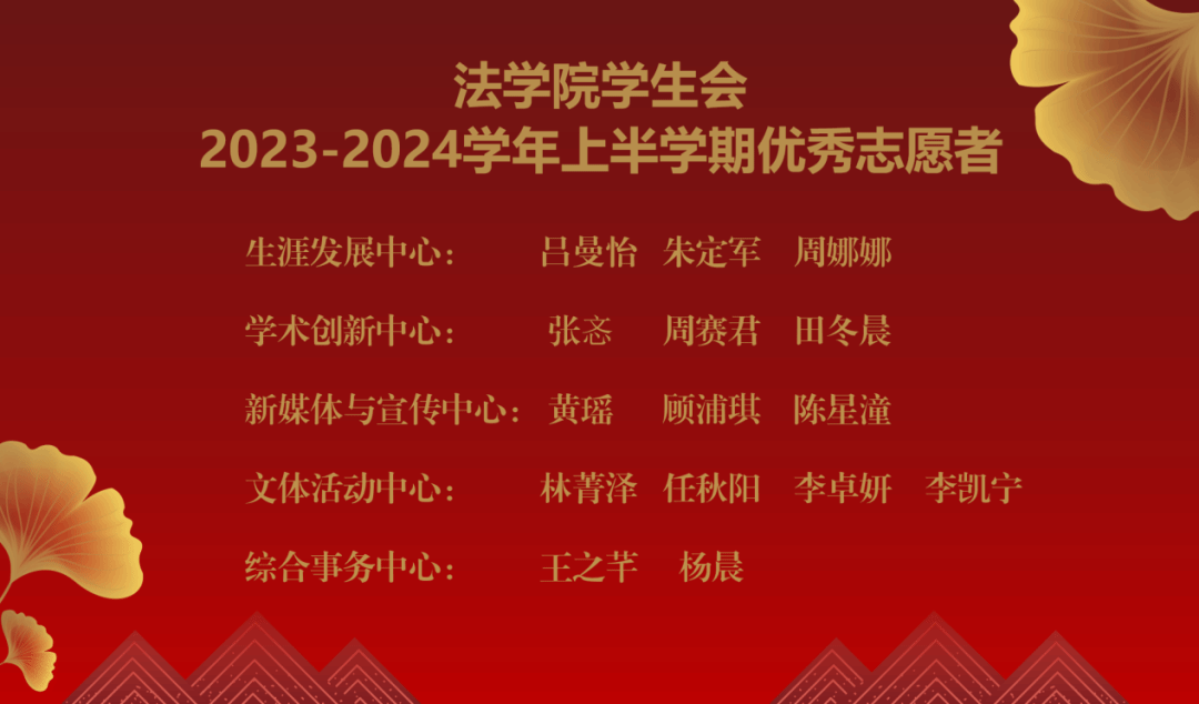 同时,她宣读了法学院学生会2023-2024学年第一学期优秀志愿者名单,并对同学们的工作予以充分肯定。