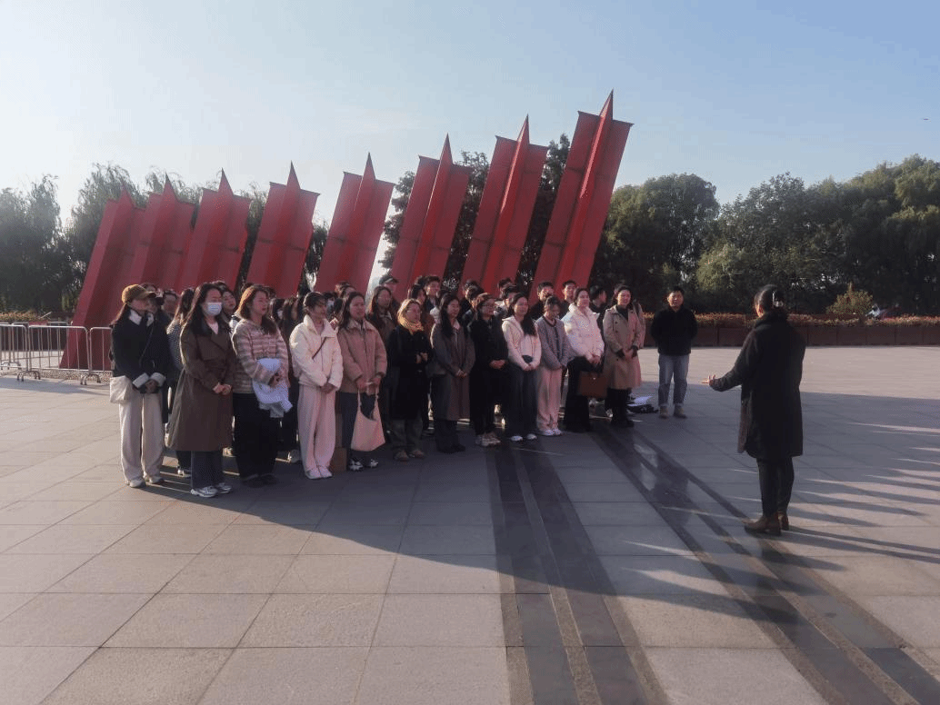 之后,同学前往胜利广场开展活动,由褚振宇领诵,全体同学齐诵《七律·人民解放军占领南京》,领略“钟山风雨起苍黄,百万雄师过大江”的英勇气势,“虎踞龙盘今胜昔,天翻地覆慨而慷”的革命气概。