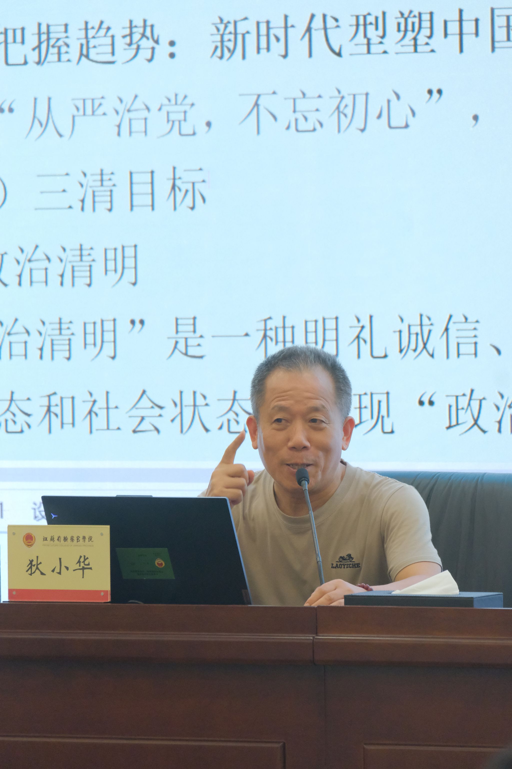 8月18日上午,成人网 党委理论讲师团成员、法学院教授狄小华为师生学员作“新时代反腐倡廉新模式”专题授课。“腐败是危害党的生命力和战斗力的最大毒瘤,反腐败斗争必须常抓不懈、久久为功。”讲座中,狄小华围绕习近平总书记关于党风廉政建设和反腐败斗争的重要论述,结合党的二十大报告中对全面从严治党的新要求,深刻且系统地解答了在新时代的全新挑战下,党员同志应如何精准回应人民群众的期待,切实彰显新作为。学员们专注聆听、潜心思考,认真领悟全面从严治党的战略方针,对“全面从严治党永远在路上”的内涵有了更深刻的理解。