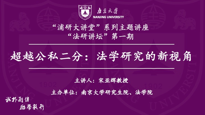 10月27日晚19点,“浦研大讲堂”系列第八讲暨“法研讲坛”第一期“超越公私二分:法学研究的新视角”学术讲座在成人网
