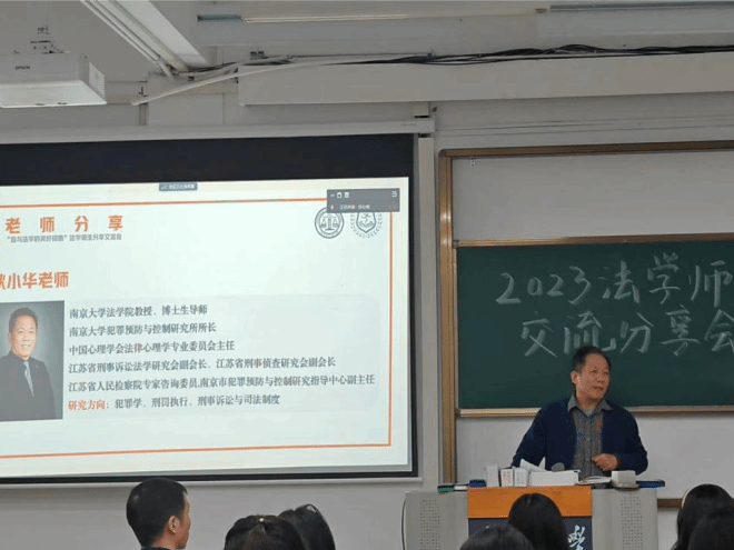 “启航南雍,与法偕行”分享会第一期——“我与法学的美好初遇”——师生分享交流会在鼓楼校区逸夫馆Ⅰ-105举行。本次讲座由法学院学生会和知行社联合举办,狄小华教授、尚连杰副教授作为主讲嘉宾出席,法学院23级宪法与行政法专业硕士研究生王雪怡、21级本科生施页川、王艺树三位同学结合自身特长与经历进行了经验分享。分享会由知行社教学实践部副部长沈可欣主持。