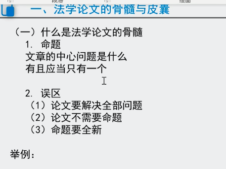 冯老师将论文的命题与注释比喻为骨髓与皮囊,形象地突出了二者在论文写作中的核心地位。冯老师指出,法学论文的中心命题有且应当只有一个,“论文不需要全面完善地解决某个领域下的所有问题,也不需要苦思一个全新的研究问题,可以采用在前人基础上提出新观点的思路写作”,并以刘勇老师和尚连杰老师对缔约过失中的说明义务这一主题作出的不同论证为例鼓励大家进行类似尝试。