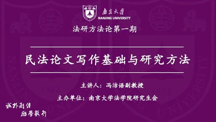 研究生会举办“法研方法论”系列活动第一期,邀请到法学院副教授冯洁语老师为大家进行“民法论文写作基础与研究方法”讲座分享,百余位同学热情参与。让我们一起来回顾冯老师的独家科研方法吧!
