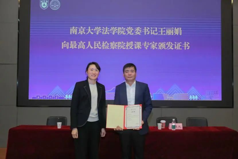最后,法学院党委书记王丽娟向最高人民检察院授课专家杜亚起颁发证书,现场师生再次以热烈的掌声感谢最高人民检察院带来的精彩一课。