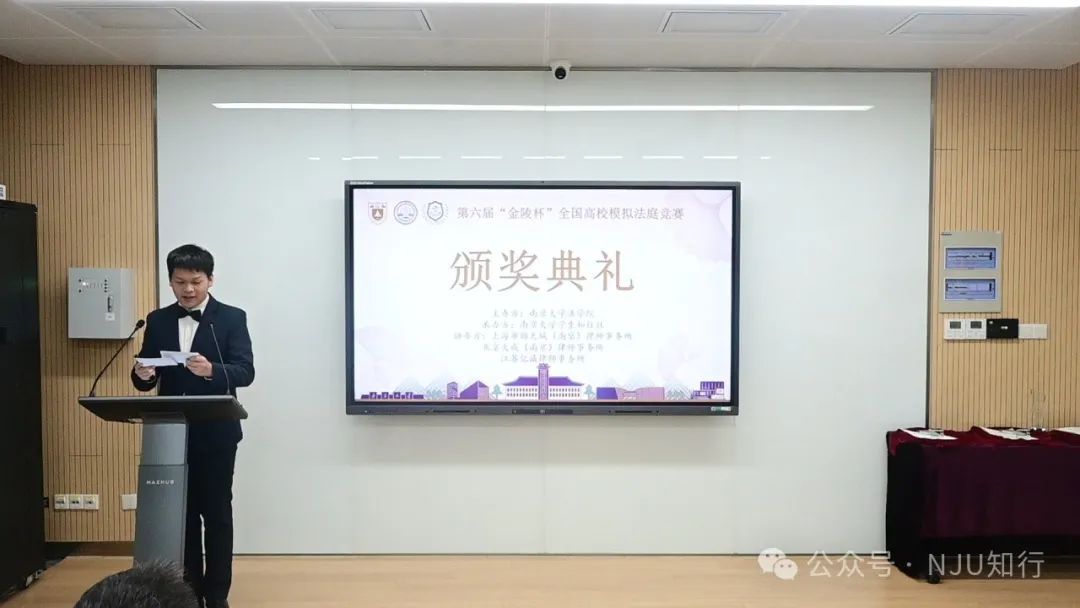 本届赛事的颁奖典礼在西南楼112室隆重举行。出席颁奖典礼的有上海市锦天城律师事务所高级合伙人、管理总部执行委员会成员、南京分所负责人倪同木律师,北京大成(南京)律师事务所监督委员会委员、高级合伙人陈芳华律师,江苏亿诚律师事务所合伙人、执行主任冯永强律师等协办方嘉宾。
