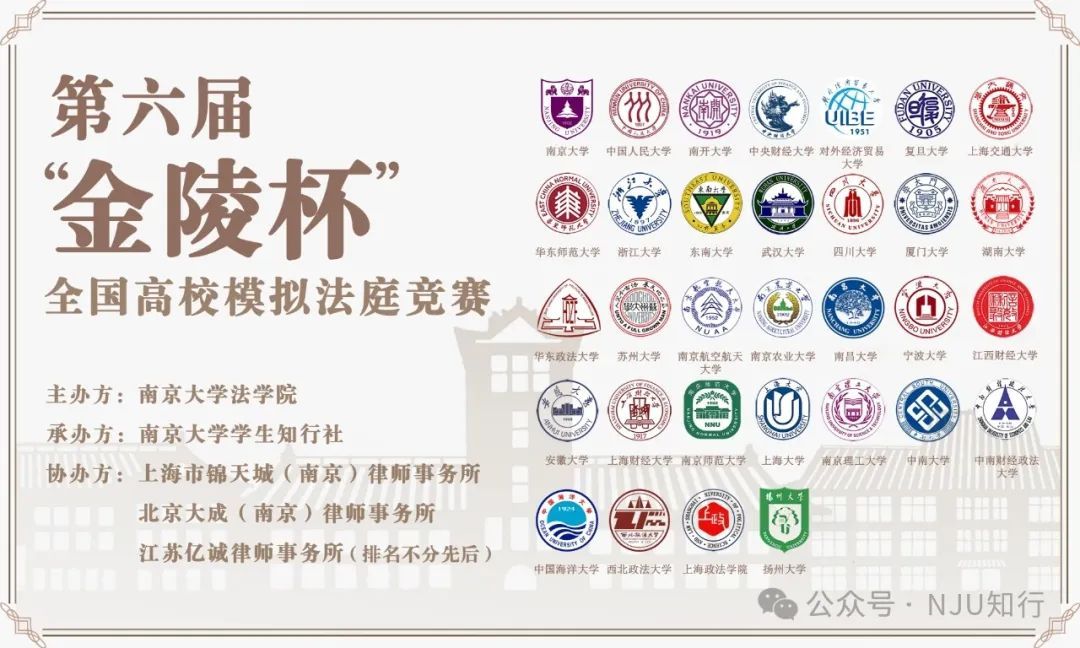 学生知行社承办,并得到了上海市锦天城(南京)律师事务所、北京大成(南京)律师事务所、江苏亿诚律师事务所(排序不分先后)的大力协办。赛事汇聚了全国各高校的优秀法学才俊,无疑是一场集专业性、思辨性与观赏性于一体的高校模拟法庭盛会。