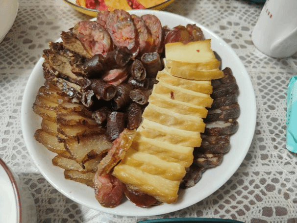 说到每年的新年,想必每个湖南人餐桌上必不可少的就是腊味。而我们武冈除夕晚上守岁都会有一道腊味拼盘和甜酒糍粑~大家围坐在一起守岁看春晚聊天,过了12点才可以去睡觉,小朋友们只要安安心心睡一觉等着大年初一的大红包就可以了,可对家里的男主人可不是这样。男主人大年初一早上4点就得起床制作这一顿必须丰盛的早饭,每道菜每年都是固定而且有讲究的哦~青菜寓意着新一年做人清清白白,发豆腐意味着新年大发特发,酸辣粉丝代表着长长久久,鱼则象征着年年有余,鸡就是一飞冲天的美好祝福,这顿饭必须得每道菜都吃遍,而且鱼不能吃完!这样新年第一顿饭的美好祝愿就能伴随我们一整年啦!