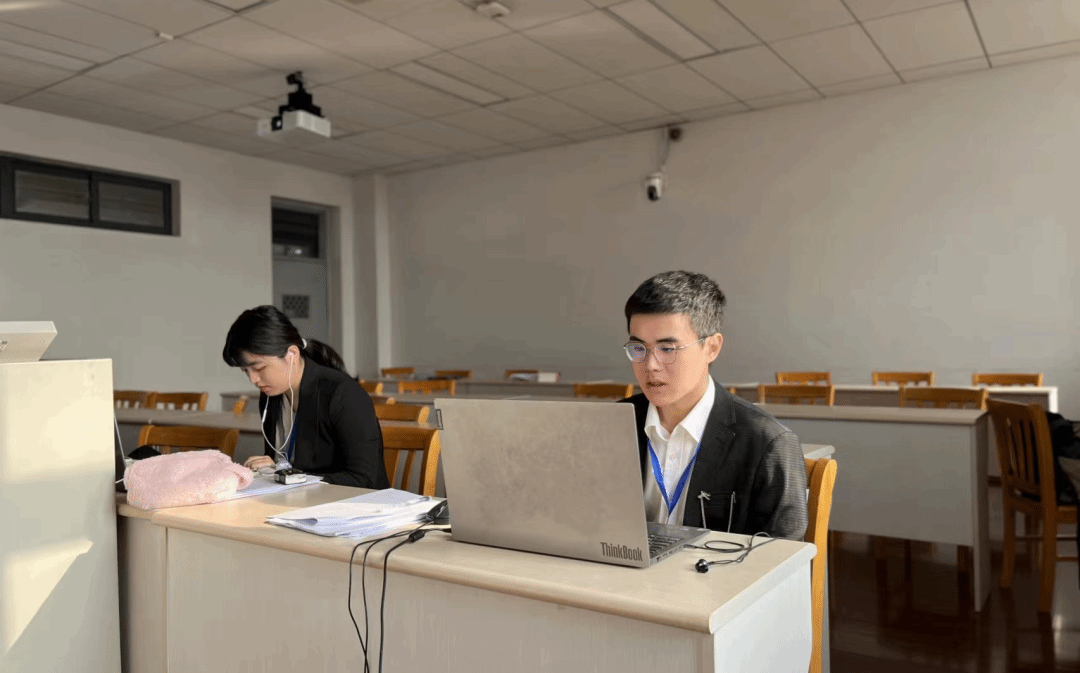 在长达三个月的备赛过程中,我们经历了多次队内讨论与模拟庭辩,曲咨丞同学每次都能让我眼前一亮,这也让我经常赞叹他扎实的专业功底和自如的法庭辩论能力,也正因此,我们常常叫他“曲哥”。在半决赛对阵福州大学原告方时,他临时转变了核心陈述思路,让对方措手不及,甚至让作为观众的我都替对手捏一把汗!在决赛的庭辩环节中,双方你来我往难分伯仲,而最后结辩环节,曲哥再度发力,当场总结争议焦点,五分钟持续输出,把整场比赛推向高潮,坐在观众席的我们也为之震撼,内心疯狂打call:曲哥牛逼!