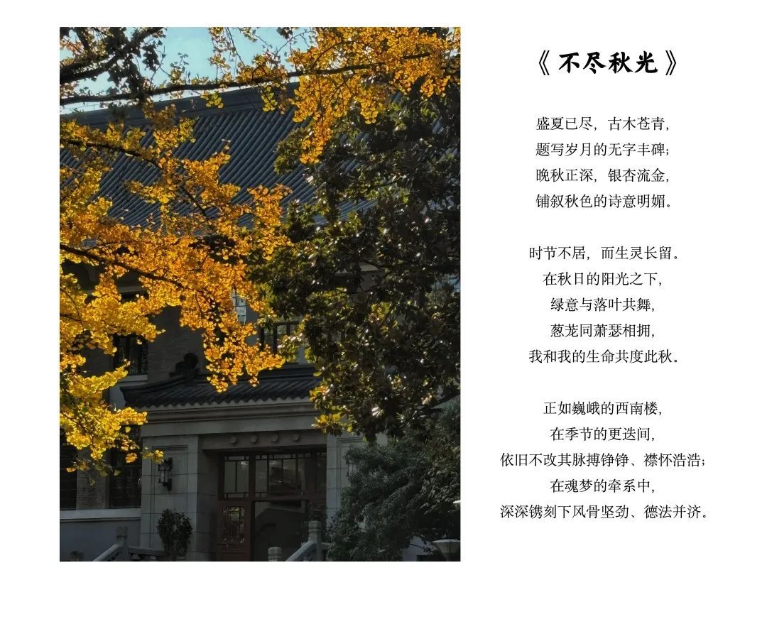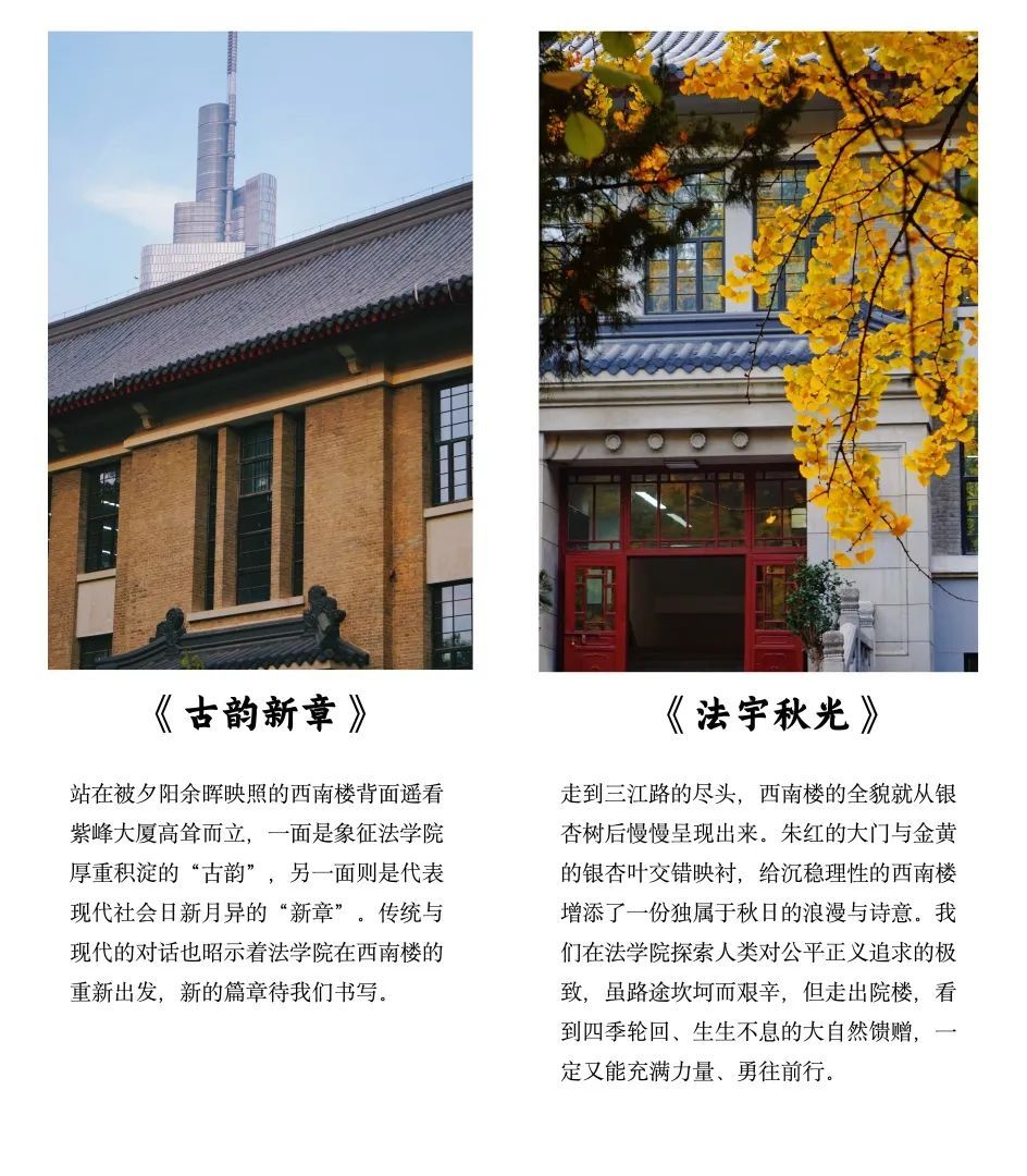 夕阳无限好,红叶映霜天。在漫山红遍、金叶铺地的晚秋时节,法学院党委领导法学院关心下一代工作委员会积极发挥党建示范引领作用,凝聚“银发力量”,坚持立德树人根本任务,精心谋划“西南楼记·镜绘法韵”西南楼摄影大赛,通过法学院“老中青”三代师生共建共融方式,发挥“传帮带”作用,引导代代南法人探寻南法风韵、传承精神底蕴,谱写守正创新的时代华章,在协同培养德智体美劳全面发展的社会主义建设者和接班人方面展现新作为、开创新局面。