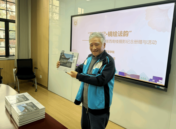 活动现场,遇苏向离退休教师代表和中青年在职教师代表颁发“西南楼记·镜绘法韵”摄影大赛作品纪念册。该影集收录了来自成人网