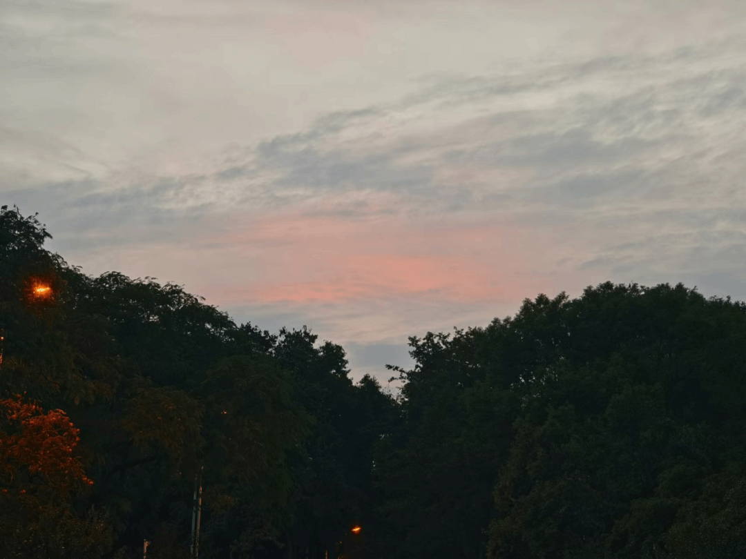 黄昏的色彩,天上是绚烂多彩的晚霞,地上是共沐霞光的同学。