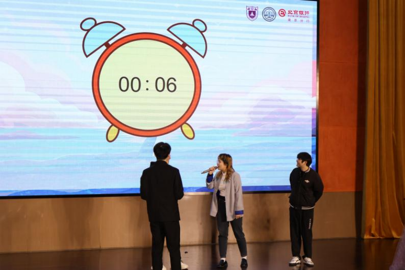 第三篇章的表演结束后,又到了精彩的游戏环节。在本轮“计时炸弹”游戏中,参赛者迅速回答前一名同学提出的问题,又马上向下一名同学抛出不同的问题。随着一次次紧张刺激的话筒传递,有人不假思索“已读乱回”,有人思维跳脱“张口就来”,最终,一名同学打败其他所有对手,成为了本次游戏的获胜者!