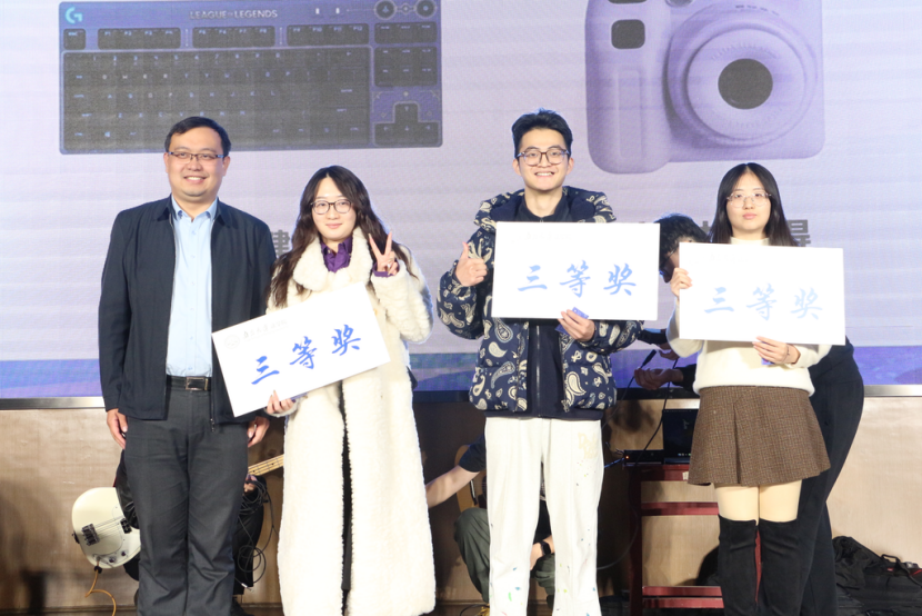 第一篇章表演结束,到了激动人心的抽奖环节。本轮三等奖由党委副书记马骏老师为我们抽取。恭喜以上三位幸运同学分别获得精美的罗技键盘、富士拍立得和SKG肩颈按摩仪!