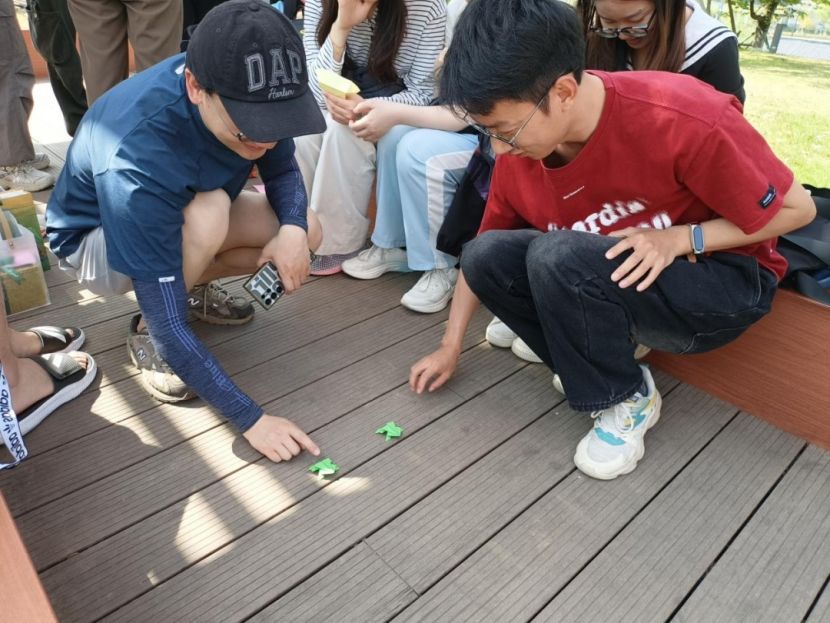 在充满创意和欢乐的折纸过后,同学们迎来了“齐心协力摆造型”游戏。所有人分成两组,开启了一场考验协作与默契的趣味挑战。随着指令下达,各组迅速按照图纸要求摆出造型。镜头前,大家配合默契、姿态各异,时而屏息凝神调整动作,时而相视而笑共享灵感,用肢体语言传递出无限欢乐。定格的每一张照片里,都凝聚着团队的默契与活力。在欢笑声中,同学们不仅卸下了压力,更在相互配合中加深了与彼此的情谊。春日的美好与温暖,随着快门声永远留存。