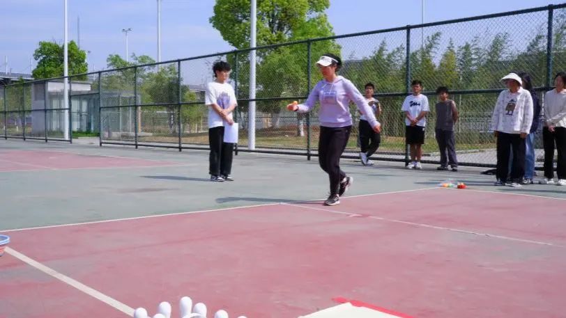 在这个项目中,队员需要接力将起点的球用筷子迅速夹到终点的盆中,若不慎掉落则回到起点重新开始。只见参赛成员们压低重心、屏息凝神,脚步细碎而又快速前行,稳稳当当地将小球夹到终点的盆中。这个活动充分展现出同学们的耐心和细心。