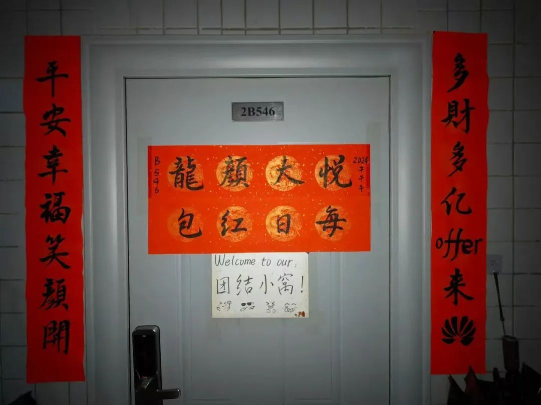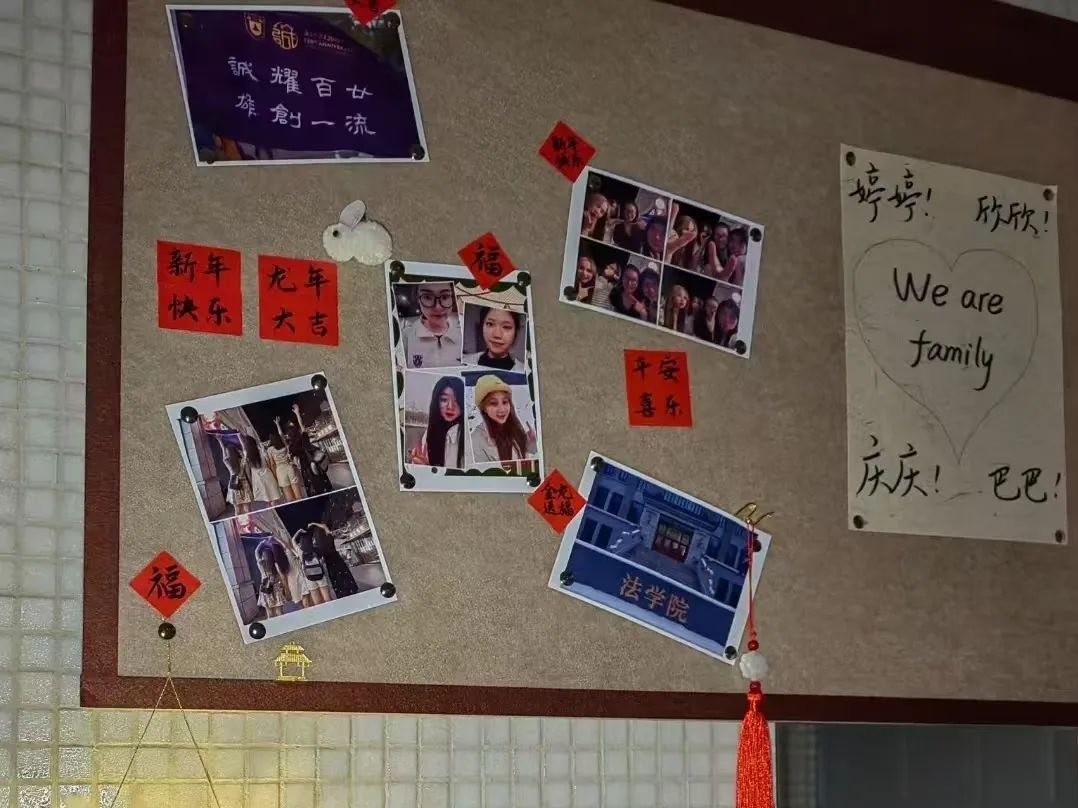 2B546寝室选择构筑起独属的“温暖小窝”:行至门前,入目便是“平安幸福笑颜开,多财多亿offer来”,进门便能看到大幅的Family Tree手绘墙,一旁贴着数张温馨的合影,便签板记录着彼此陪伴走过的那些岁月,传递着家人般的温暖陪伴。