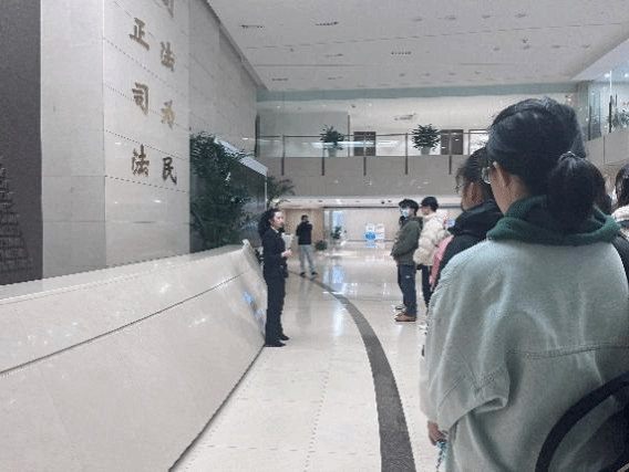 在本次活动中,在南京市中级人民法院未成年人及家事案件审判庭法官助理的带领下,同学们参观了诉讼服务大厅、法庭和院史馆。在随后的座谈会中,法官助理为同学们答疑解惑,并指导同学们如何正确、高效地研读裁判文书。