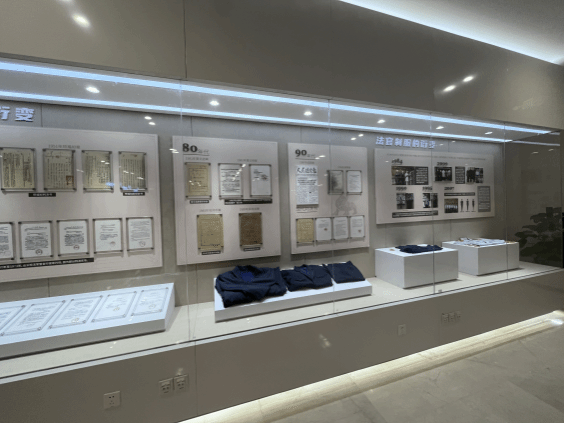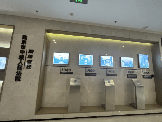 首先,法官助理带领同学们参观了诉讼服务大厅,她不仅向同学们介绍了安检通道、立案窗口、缴费窗口和智能网上立案系统,还向同学们介绍了南京市中级人民法院的制服变迁、判决书迭代、建院历程和历代院址。