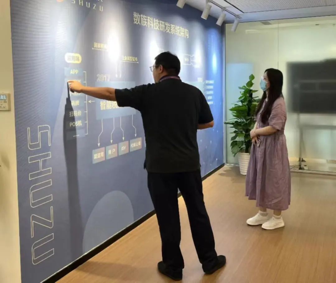 开甲书院学生事务中心主任唐赟老师带领下,横跨长江,抵达南京数族科技有限公司总部开展调研。调研伊始,数族行业应用中心杨平总监引导团队参观了数族科技近年来的发展动向和各类荣誉,以及数族科技目前运营的税控系统、解决方案等产品样例。