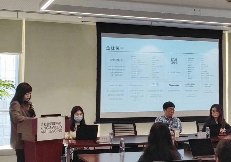 邬玲律师介绍了律所概况、荣誉成就和差异化优势,展现了客户至上、精诚奉献、团队合作、追求卓越的核心价值观。