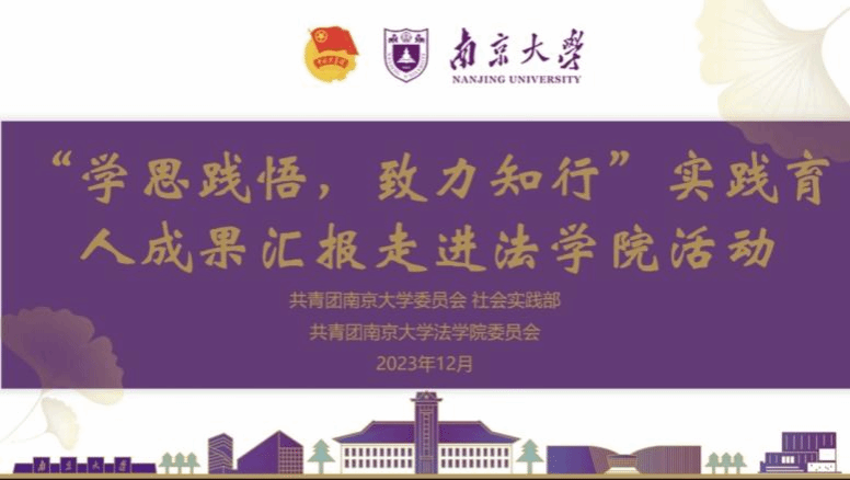 本次社会实践育人成果汇报走进法学院团日活动,帮助团员们学习社会实践各个流程中的宝贵经验,感受社会实践过程中的挑战与收获,激发了广大团员青年建功立业、强国有我的青春热情。相信通过这次团日活动,同学们将以更多元的视角、更积极的态度投身社会实践,以实际行动深刻落实“奋进行动”,以南大式奋进谱写新时代“第一个南大”建设新篇章。