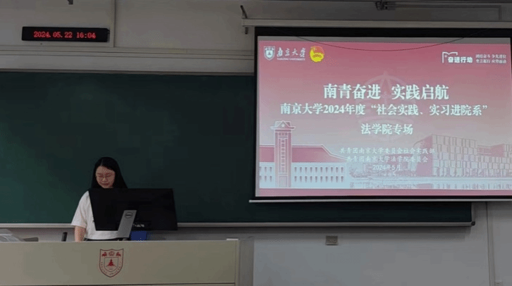 为增强实践育人实效,团结引领南大青年在社会实践中“受教育、长才干、作贡献”,将全青实习岗的受益面从参与同学延伸到全校青年,由校团委社会实践部和院团委联合组织策划的“2024年度社会实践、实习进院系”法学院专场于5月22日下午顺利举办。