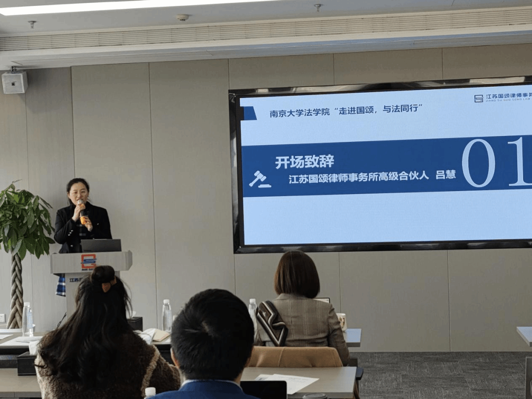 江苏国颂律师事务所高级合伙人吕慧代表律所对同学们的到来表示热烈欢迎,她对律所进行了简要介绍:国颂弘扬奋进、友善、愉悦的律所文化,同时积极打造专业、高效和诚信的法律服务机构,为客户提供全方位、高质量、高赋能的法律服务,兼具重大商事争议业务中心、刑事业务中心、公司业务部、投资业务部、政府法律顾问业务部等多业务模块。吕律师希望各位同学有所收获,并相信国颂能为南大法学生社会实践活动提供有力的支撑,也期待本次活动可以成为律所与成人网