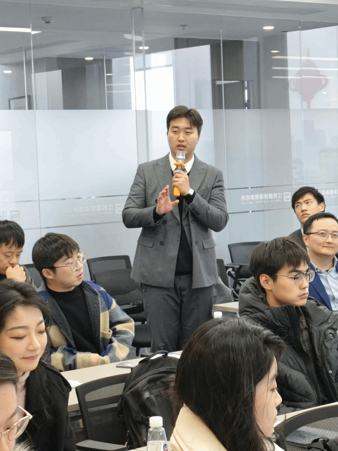 休息之后,江苏国颂律师事务所通过真人短剧的形式生动演绎了律师团队在接受委托、与当事人会面等环节中的沟通和辩护策略。整个演绎过程轻松活泼,让每一个同学亲身感受到律师工作的现实状况,同学们收获颇丰。