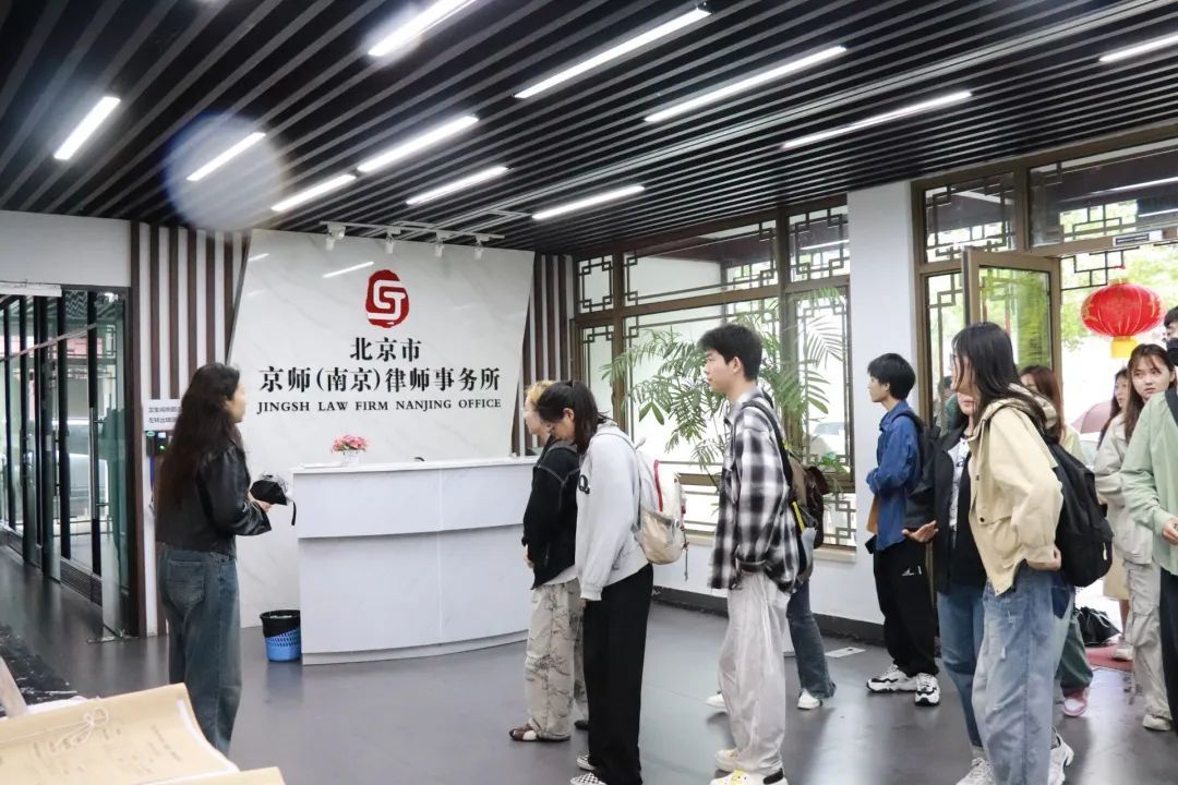 在京师南京律所行政部杨阳的带领下,法学院学生走进律所办公场所,深度了解律所发展历程与业务布局。
