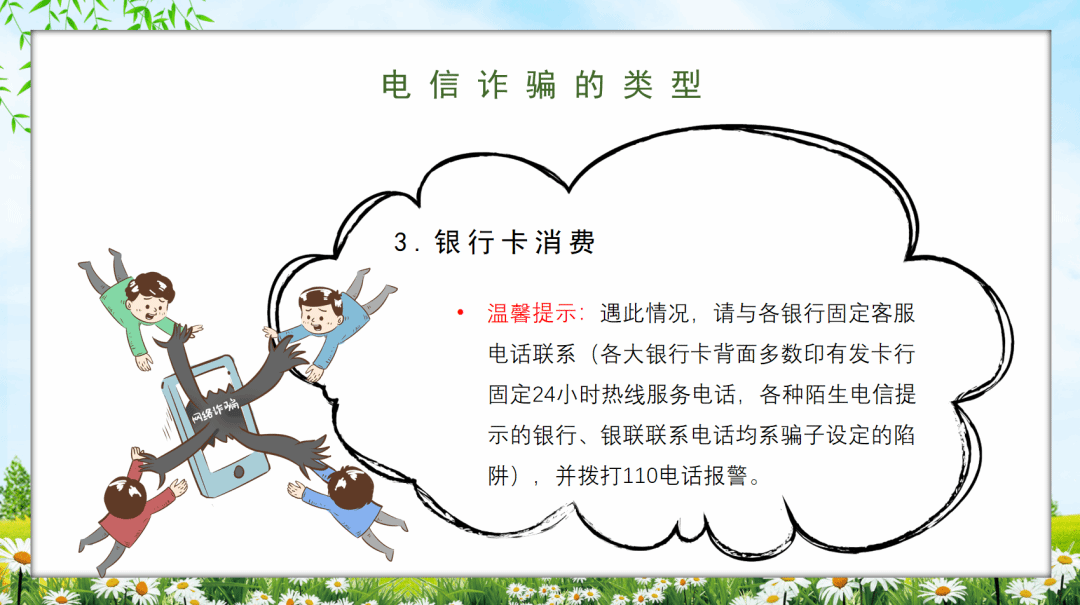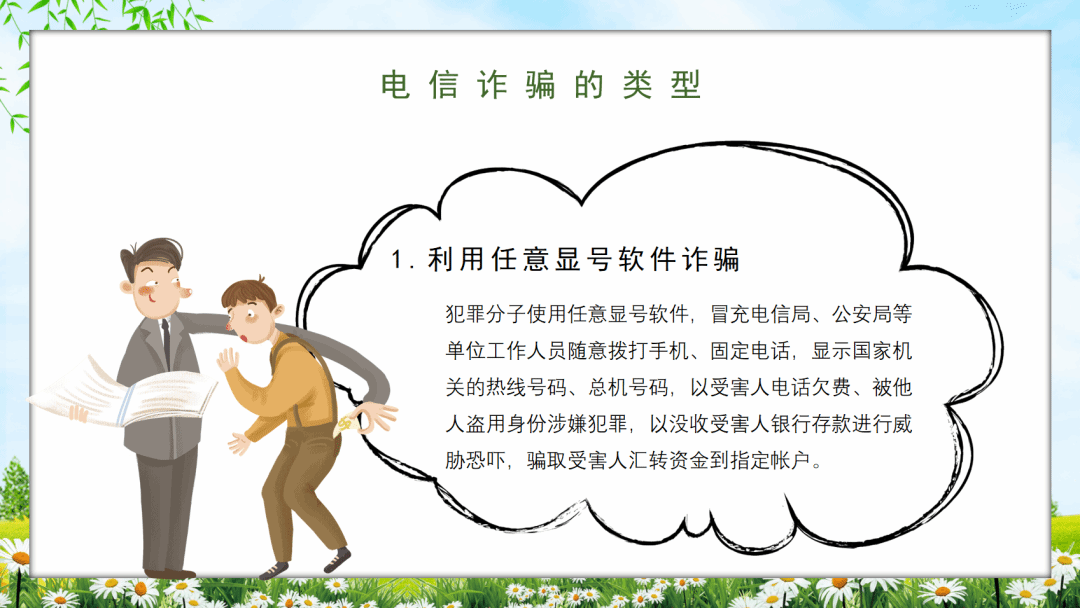 随后,为使同学们更直观地了解电信网络诈骗可能出现的情形,志愿者一一介绍了传统的电信网络诈骗类型以及新型电信网络诈骗方式,通过讲述生动形象的案例,不仅让同学们深入了解了诈骗可能出现的场景,也使他们认识到网络诈骗的危害后果,在同学们心中埋下了警惕诈骗、保护好个人信息及财产的种子。