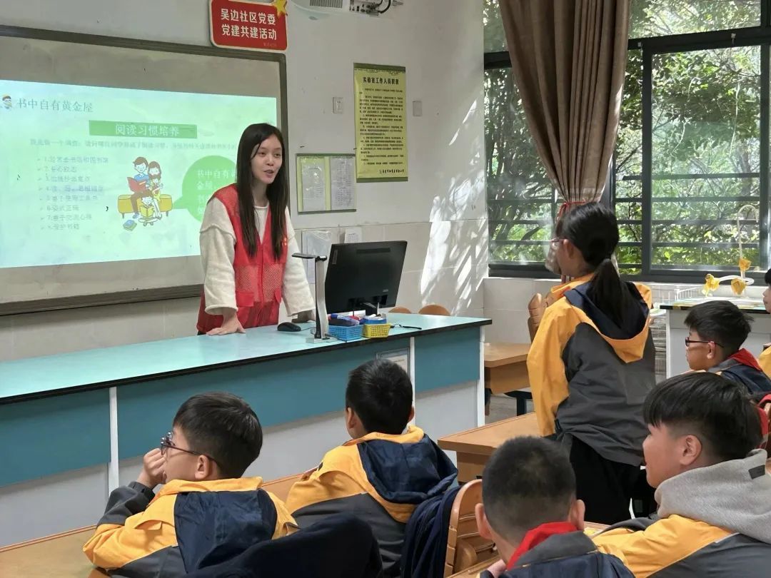 志愿者与同学们展开了有趣的互动,围绕自己的阅读习惯、最喜欢读的书,同学们畅所欲言,积极分享。在欢声笑语之中,志愿者引出了“绿色阅读”主题,希望大家在阅读的时候能够“读好书”,多阅读经典名著作品,对盗版书籍、色情淫秽书籍、含有暴力邪教等内容的书籍坚定地说“不”。