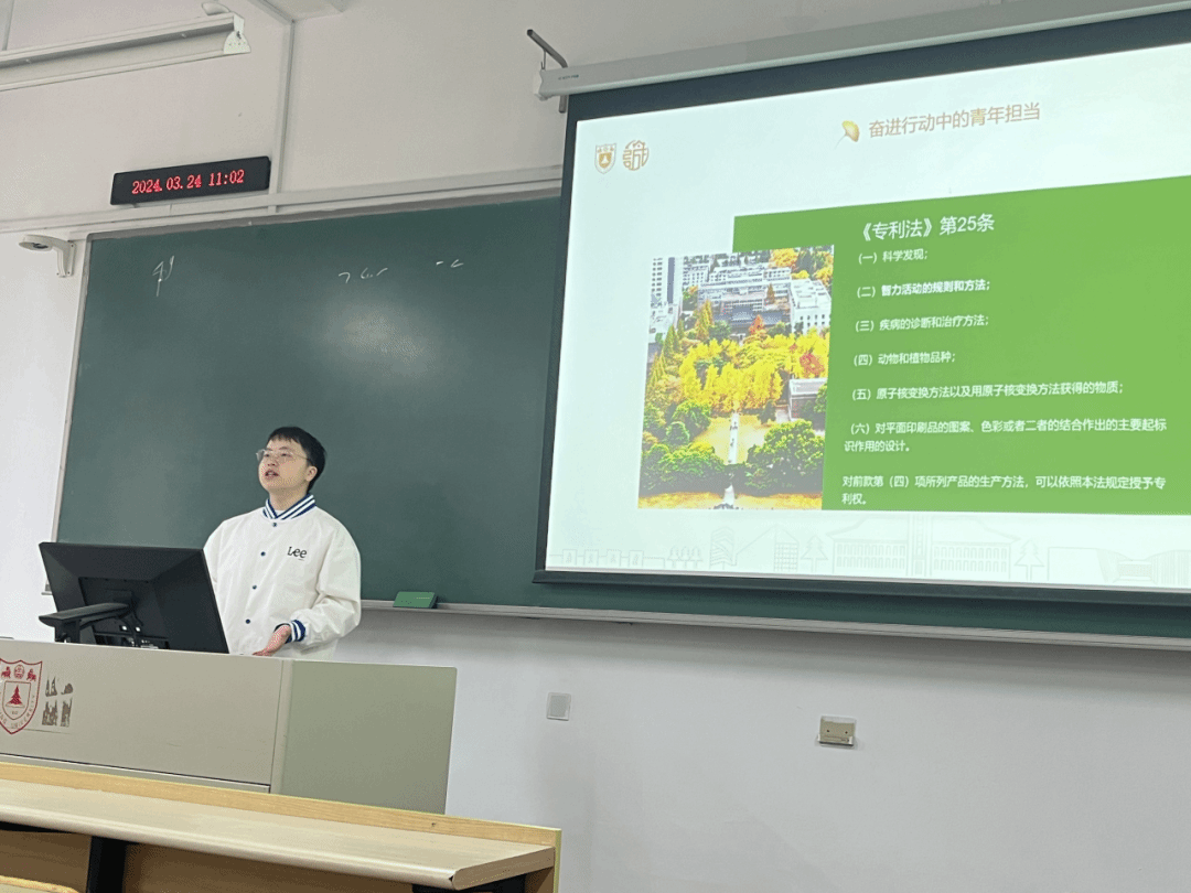 数学系,开展了“法言智汇”之“知识产权进院系(数学系篇)”的活动。在本次活动中,2023级刑法研究生陈金森同学围绕“数学中的知识产权”这一数学系同学感兴趣的法律问题,进行了细致生动的普法宣讲。