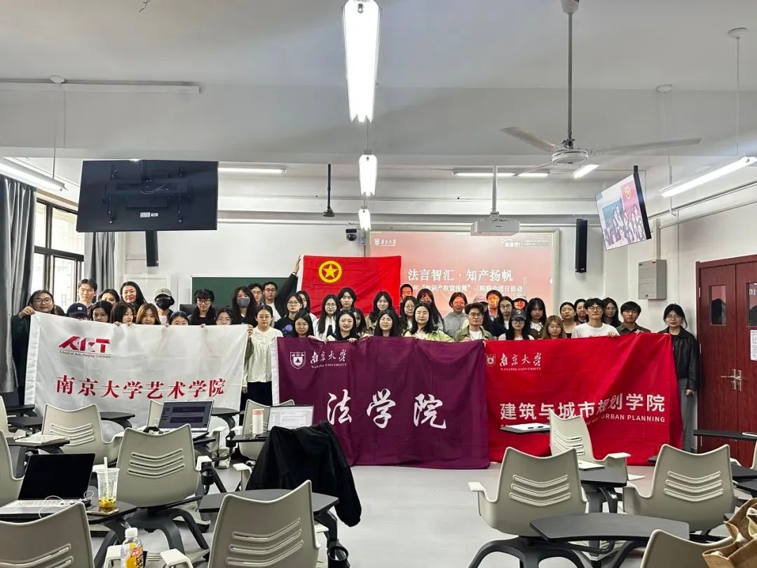 4月24日下午,法学院团委联合建筑与城市规划学院团委、艺术学院团委,于浦口校区举办三院联合团日活动。法学院志愿者杨康宁带领同学们学习了习近平总书记关于知识产权工作的重要论述,崔越、姬彧两位志愿者则分别就著作权法与专利法的基本知识进行分享,并就相关专业实践中可能遇到的问题作出解答。