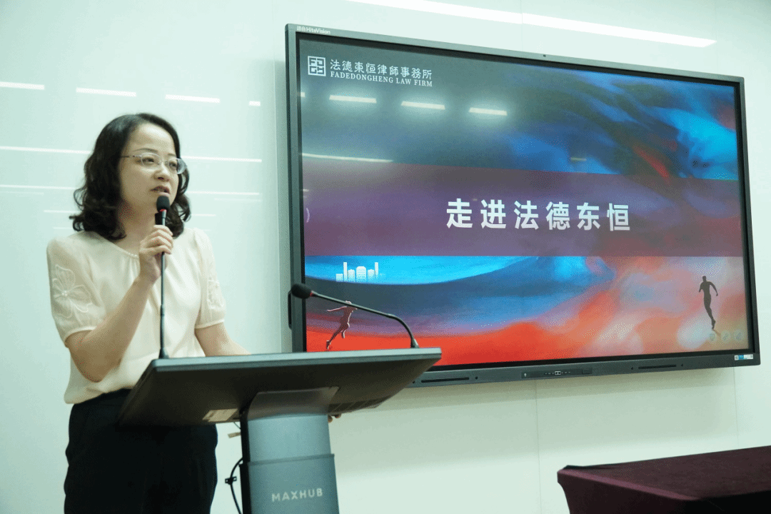 江苏法德东恒律师事务所人事经理茅蓉蓉女士从法德东恒的发展历史、律所荣誉、律所规模、人员结构等展开介绍。法德东恒律师事务所深耕江苏、布局长三角、辐射中国法律服务市场,在房地产、破产重整、投融资、数据网络与知识产权等业务领域均取得了不俗的成绩。法德东恒重视成人网打造与专业人才培养,为青年律师成长提供明晰的发展路径。同时,律所即将迁入新办公大楼,为律师们提供更舒适的办公环境。