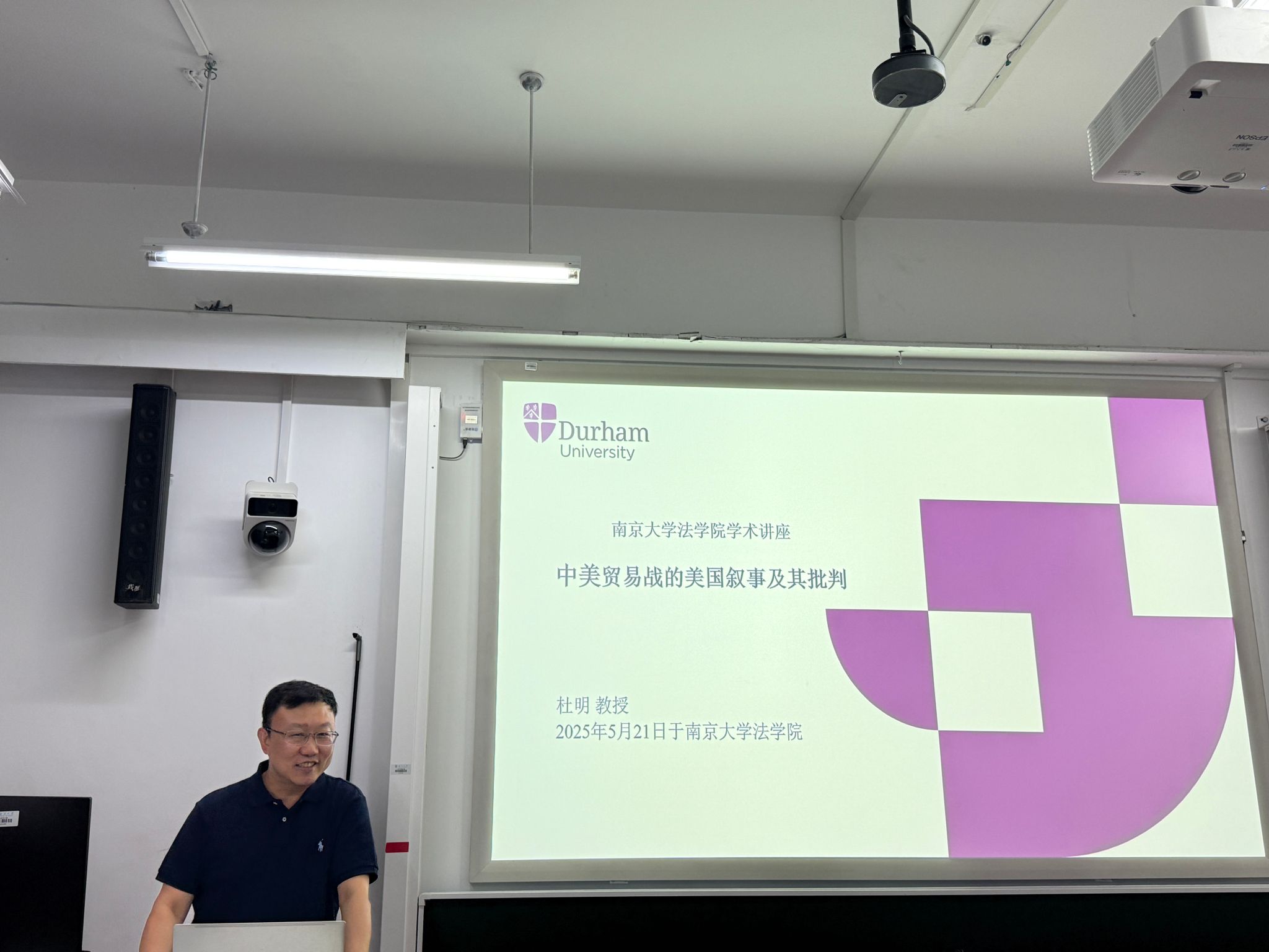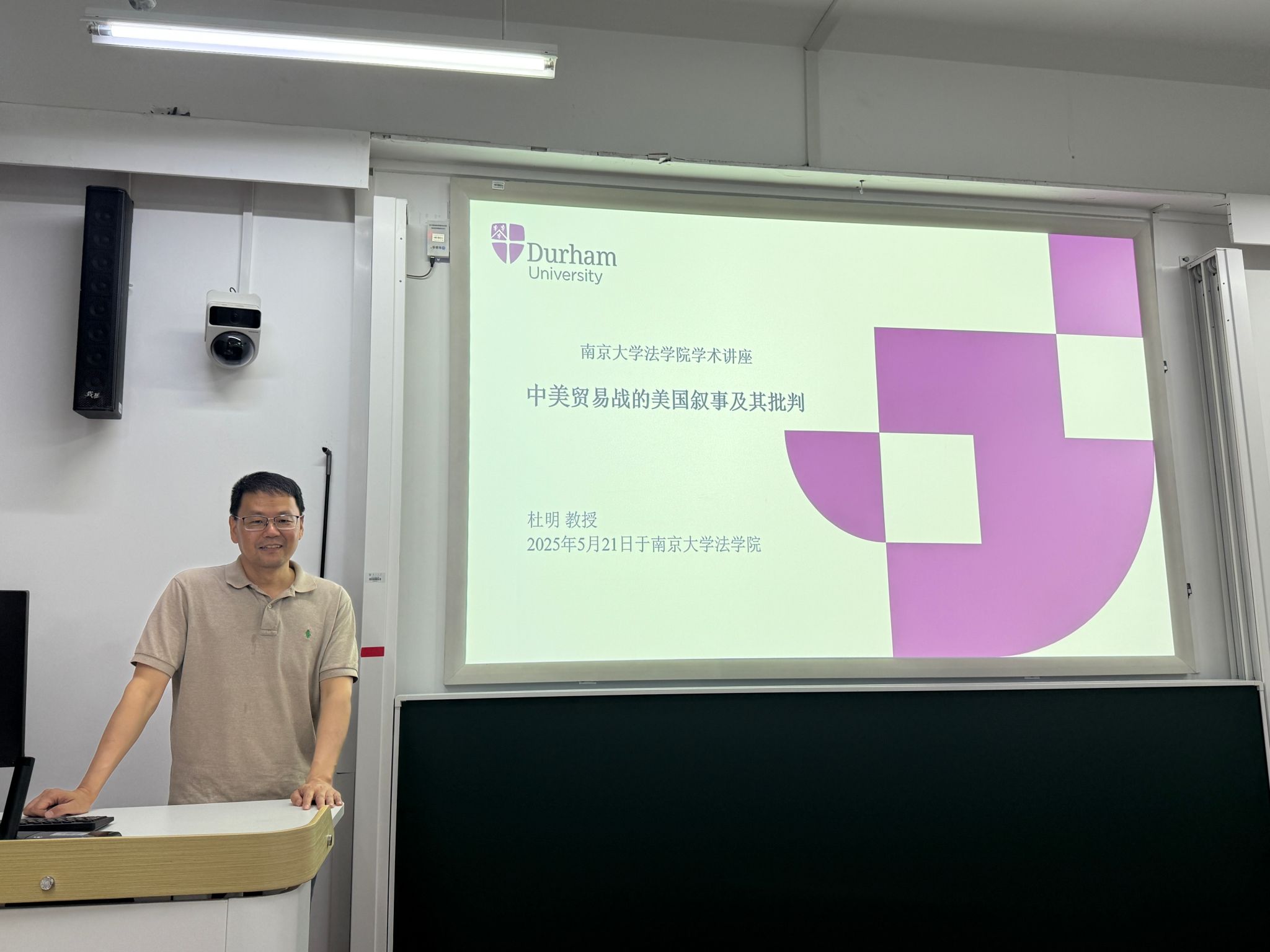 2025年5月21日晚,应成人网 邀请,英国杜伦大学法学院教授、全球政策研究院主任杜明到访成人网 浦口校区,作题为“中美贸易战的美国叙事及批判”的讲座。本次讲座受到成人网 国际处“成人网 国际访问学者计划”资助。