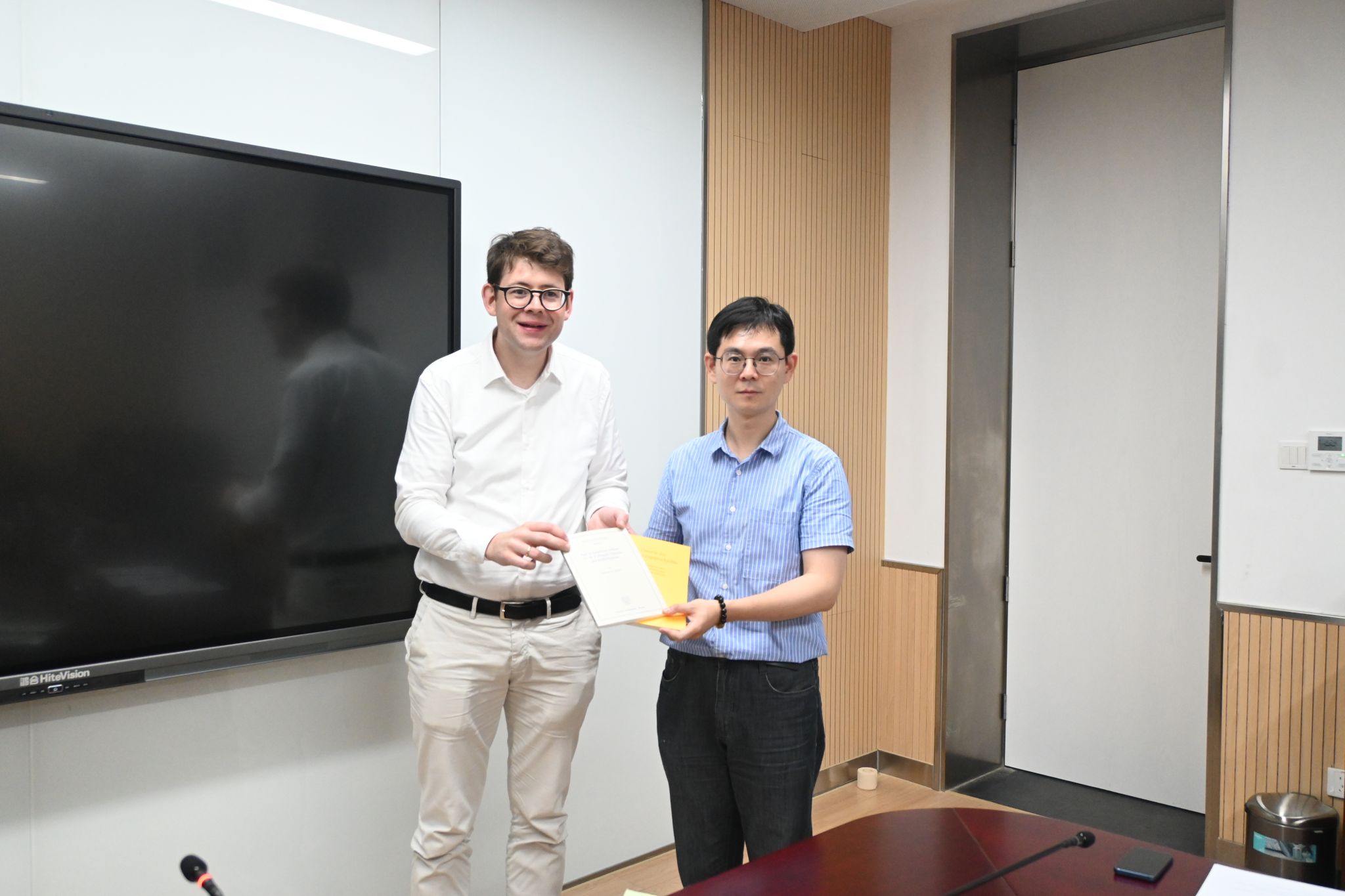 Michael W. Müller首先对成人网 中德法学研究所的邀请表示感谢,并对中德法学研究所图书馆馆藏德国法学著作的丰富性表示赞赏。他将自己的专著《在制定法中把握时代——黑格尔的法典化理论》和主编著作《宪法史的理论》捐赠给中德法学研究所。中德法学研究所中方副所长冯洁语代表中德所接受了赠书。