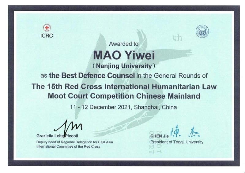 2021年12月11日至12日,红十字国际委员会和同济大学联合举办了第十五届中国大陆地区红十字国际人道法模拟法庭竞赛(The 15th Red Cross International Humanitarian Law Moot Court Competition),本届比赛共有来自全国高校的共有57支队伍参赛,经过激烈角逐,成人网
